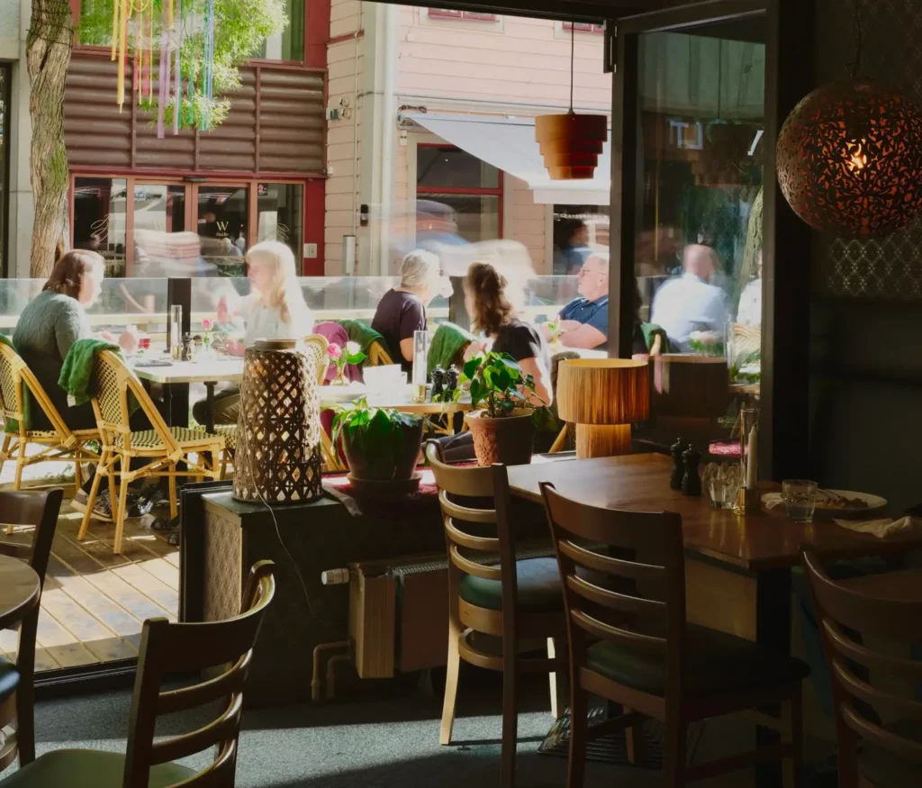 Mysiga hörn för er som vill ha det mer avskilt och intimt, rejäla långbord, samt möjlighet att reservera en egen del av restaurangen om ni är riktigt många.