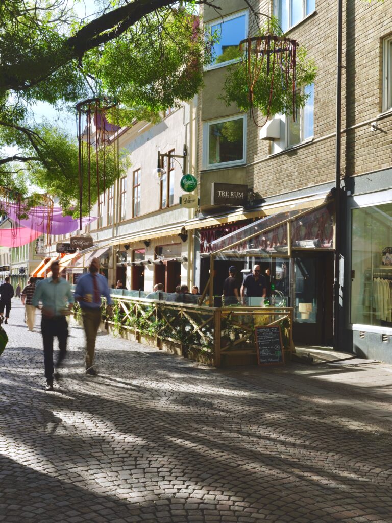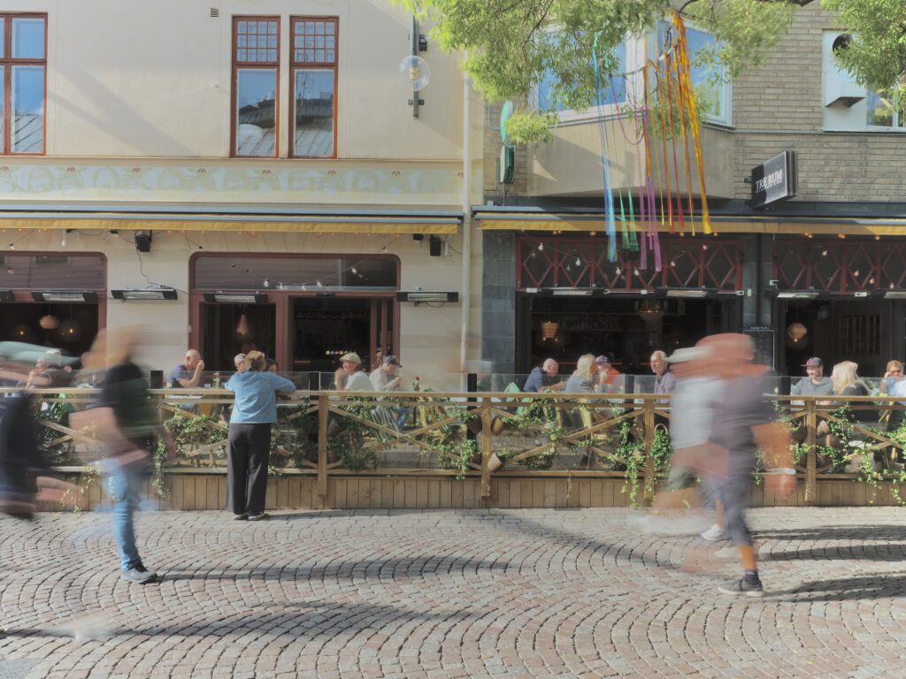 Vi har även öppnat vår populära uteservering mitt i folkvimlet på gågatan, där det är fullt ös från första april till sista oktober.