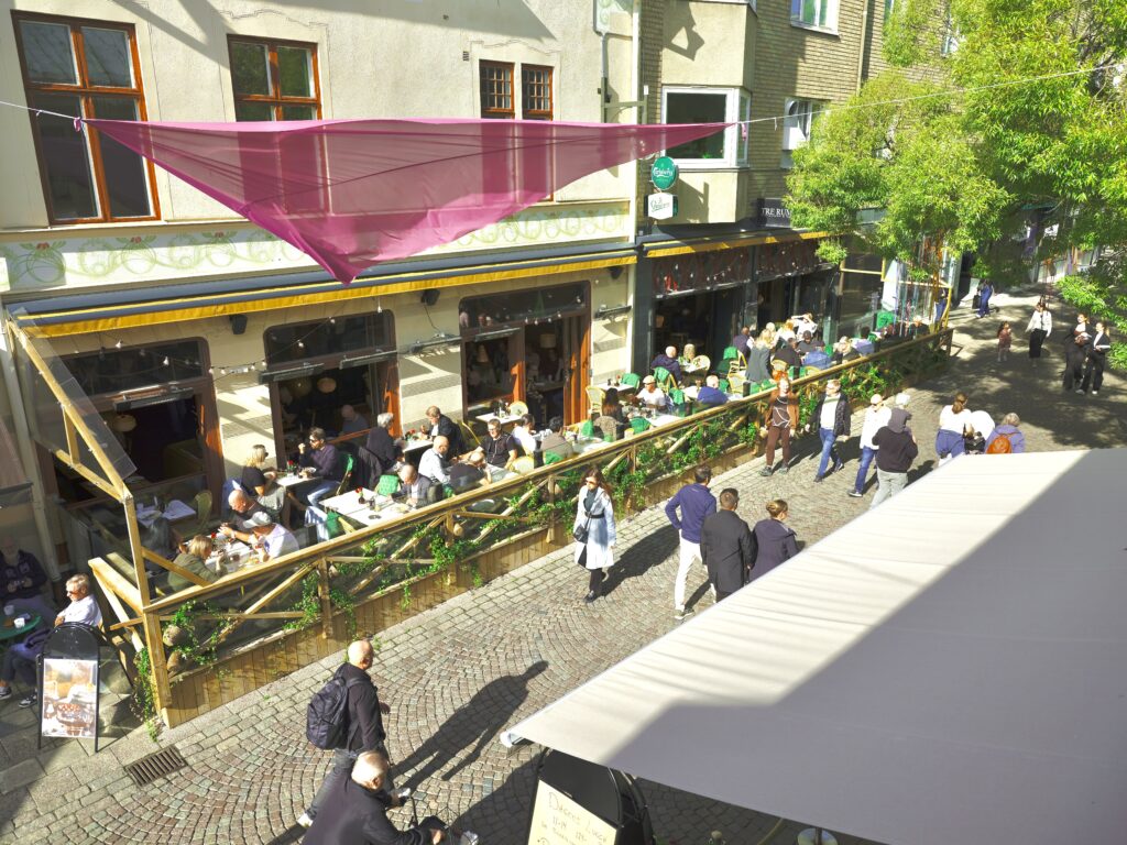 1 april – 31 oktober kan ni njuta av mat och dryck på vår härliga uppvärmda uteservering, perfekt för långa kvällar i stadens hjärta.